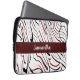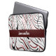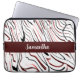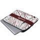 Este design apresenta faixas vermelhas, brancas e pretas com fundo branco no bolsa de laptop
