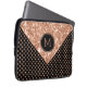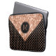 A elegante textura rosa-ouro brilhante e o padrão poka-pontos-ouro-rosa em fundo preto. Monograma personalizado