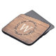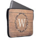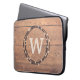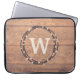 Design de monograma para Natal, com coroa e decoração de neve sobre fundo de madeira rústica