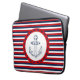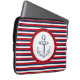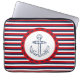 Design náutico com decoração da âncora desenhada à mão sobre fundo riscado a azul, vermelho e branco