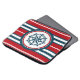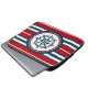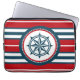 Design náutico com decoração em forma de bússola em fundo listrado vermelho, azul e branco