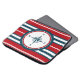 Design náutico com decoração em forma de bússola em fundo listrado vermelho, azul e branco