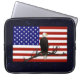 Uma águia careca varreu o céu de sua perca em um galho de árvore; sobreposto a uma bandeira dos Estados Unidos.