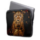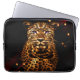 Eclipse Majestade, mostre um leopardo com pele de ouro brilhante e manchas distintas, colocado sobre um fundo escuro. Os olhos do leopardo estão iluminados em roxo brilhante, criando um efeito marcante e místico. Os arredores escuros são acentuados por luzes espalhadas e quentes, dando à cena uma atmosfera dramática quase de outro mundo.