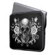 Um design elegante e romântico com rosas e crânio.