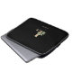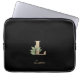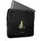 A bolsa de laptop preta elegante apresenta um monograma botânico dourado no centro.