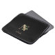 A bolsa de laptop preta elegante apresenta um monograma botânico dourado no centro.