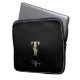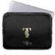 A bolsa de laptop preta elegante apresenta um monograma botânico dourado no centro.