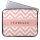 Proteja seu laptop com estilo com uma manga moderna. Design apresenta um padrão e uma faixa bonito cor-de-rosa, cor-de-rosa, folha de ouro rosa, em zig-zag, e seu nome ou outro texto personalizado em uma simples fonte de tipografia negra. Este elegante e moderno caso de computador faz um presente de na moda para ela.