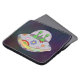 Nesta divertida ilustração de ficção científica de Richard H. Fay, aliens verdes ranzinza cavalheiristas cavalgam num disco voador decorado com flores, corações, uma estrela e um arco-íris.