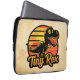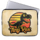 Silhueta de dinossauro t-rex, retrô bonito, no pôr do sol, com eletrônicos de texto "Tiny Rex".