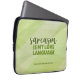 Vestir seu dispositivo com esta bolsa de laptop verde moderna. Ele apresenta um fundo abstrato verde e o seguinte texto: "Sarcasmo é minha língua de amor." Também há espaço para texto personalizado na parte inferior, como um nome, ou ele pode ser excluído.
