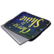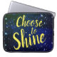 Uma bolsa de laptop distante com um fundo estrelado e as palavras "Escolher brilhar" em um script amarelo.
