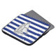 Um cromo prateado como design de veleiro em uma decoração de listras azuis marinho. Um presente moderno de dispositivos náuticos. Mensagem Use o link "Perguntar a este Designer" para entrar em contato conosco com suas solicitações especiais de design ou para obter assistência com qualquer das suas necessidades de personalização.