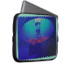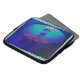 O design gráfico nesta Bolsa de laptop de 10" apresenta uma fotografia original de ZoeSPEAK de uma lâmpada. É uma vista de baixo, olhando para cima dentro da lâmpada e da lâmpada sob a sombra. A lâmpada está acesa, dando à parte inferior da sombra um brilho verde-marinho nos arredores azuis-escuros do cobalto. A lâmpada tem uma tonalidade rosa. O texto, em vermelho, diz, "Eu tenho uma ideia...". As bordas superior e inferior do design têm buracos perfurados ao longo deles, parecendo-se um pouco com as bordas de uma fita de 35 mm. O fundo além das bordas do design é branco.