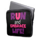 Se você gosta de correr, correr 5Ks, 10Ks, meia maratona, ou maratonas, você vai adorar este design de texto colorido em roxo e rosa que lê Run and Embrace Life!