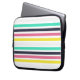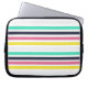 Um padrão vibrante de listras horizontais em várias cores, como palha, rosa, amarelo e preto, decoram a bolsa de laptop. O design é moderno e atraente, acrescentando um toque divertido aos seus acessórios técnicos.