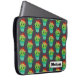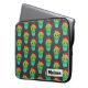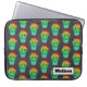 Bolsa de laptop personalizada com um padrão repetitivo. Uma ilustração fofa de um cacto redondo, com grandes olhos kawaii, sorrindo e vestindo um sombrero vermelho. Dentro de um pote de flores. O fundo é uma imagem de quadro negro.