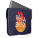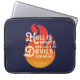 Bolsa de laptop com a citação de William Shakespeare "O Inferno está vazio, e todos os diabos estão aqui" contra um fogo laranja sobre fundo azul. *Observe que a Marca d'água do Zazzle que aparece na visualização de zoom NÃO aparecerá no produto impresso final. © Bookish e Maravilha