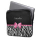 Uma bolsa de laptop preto e branco na moda do teste padrão do impressão da zebra 13 polegadas com um arco cor-de-rosa bonito da fita envolvido como um presente. Personalize adicionando seu nome. Aperfeiçoe o presente para uma menina feminino adolescente!