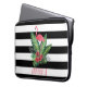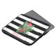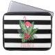 Um presente com um elegante design de listras horizontais, preto e branco, com Flamingo, cor rosa-d'água tropical, flores e folhas verdes. Personalize com seu monograma com letras pretas de tendência rosa. Por favor, peça ao designer para outras cores ou personalização Flamingo e Tropicais são os melhores tendências do ano!