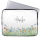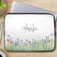 Esta bolsa de laptop floral é decorada com delicadas flores de aquarela, folhagem e borboletas em cores pastéis. Facilmente personalizável com seu nome e inicial. Original Watercolor © Michele Davies.