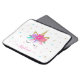 Esta bolsa de laptop unicórnio apresenta um design de rosto de unicórnio com flores, estrelas e brilho de ouro falso Personalize-o com um nome.