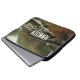 Bolsa de laptop com uma fotografia da natureza. Paisagem magnífica e bonita. Uma ponte de pedra isolada ao lado de um rio vivo com uma floresta e montanhas ao redor da área.