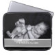 Personalize esta bolsa de laptop moderna do computador adicionando sua própria foto e nome. A área de fotografia cobrir a área inteira até as bordas e o espaço para seu nome ou texto personalizado é um fosco branco transparente.