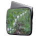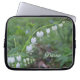 Fotografia de delicadas flores brancas do coração sangrando com fundo verde suave. Personalize esta bolsa de laptop com seu nome, faz um presente perfeito para qualquer amante da natureza.