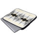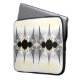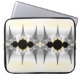 Esta bolsa de laptop apresenta arte fractal abstrato em prata e cinza gradiente com sotaques dourados.
