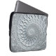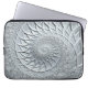 Esta bolsa de laptop monocromática apresenta um desenho fractal espiral abstrato em cinzas de luz e preto.