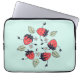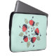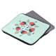Bolsa de laptop de morango de Kawaii com uma ilustração vetorial que representa 5 personagens felizes sorridentes de morango dançando em um círculo rodeado por folhas e flores da sua própria espécie. Design divertida com espírito primavera para uma pessoa que ama essas frutas deliciosas.