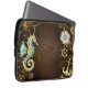 Capa Para Notebook Fundo de madeira com cavalo de mar mecânico