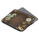Fundo de madeira castanho com fundo marinho, cordilheira mecânica, volante antigo, âncora de ouro e diversas engrenagens de ouro e latão. Estilo Steampunk.