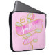 Bolsa de laptop rosa brilhante e bonito com a citação inspiradora "Sparkle on, Querido" em um roteiro branco elegante, com um fundo de faixa de fita rosa e um contorno de brilho dourado.