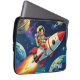 Tablet personalizado do Sci apresentando um pequeno astronauta voando pelo espaço em um foguete feito de forma retrô-pop.