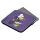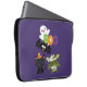 Uma bolsa de laptop com um morcego voador preto, um morcego múmico verde vestindo bandagens brancas e um gato preto bonito com um chapéu de bruxa laranja. Boo escreveu em letras coloridas divertidas com um fantasma feliz flutuando para trás.