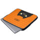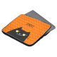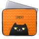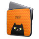 Funda de laptop divertida, fofa, moderna e kawaii de gato preto com nome-monograma e padrão de chevron laranja. Presente perfeito para qualquer amante de gatos!