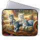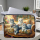Esta bolsa de laptop apresenta 4 felinos fazeres confortáveis no sofá da sala - uma cena fofa em um olhar antigo. bolsa de laptop bonito e personalizável para adolescentes, também bela ideia de presente para todos os amantes de gatos!