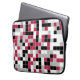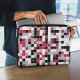 Esta bolsa de laptop colorida apresenta um padrão geométrico multicolorido na Viva Magenta, preto, cinza e branco. Os quadrados são coloridos em ordem aleatória e você pode editar as cores na ferramenta Design.