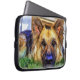 Esta bolsa de laptop tem um German shepherd gravado nela.