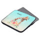 Bolsa de laptop personalizada com um desenho fofo em aquarelas de uma mãe e girafa bebê. A girafa-mãe está descansando a cabeça sobre a girafa do bebê, amorosa e adorável. Bonito buquê rosa, amarelo, verde, de flor de aquarela colocado debaixo deste par de queridos. Um fundo gradiente criado com uma delicada mistura de cor azul turquesa numa cor castanho arenoso.