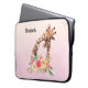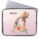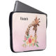 Bolsa de laptop personalizada com um desenho fofo em aquarelas de uma mãe e girafa bebê. A girafa-mãe está descansando a cabeça sobre a girafa do bebê, amorosa e adorável. Bonito buquê rosa, amarelo, verde, de flor de aquarela colocado debaixo deste par de queridos. Um plano de fundo gradiente criado usando uma mistura de cor rosa suave em cor laranja de pêssego claro.