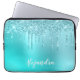 Esta design de bolsa de laptop bonito apresenta a faux aqua mint e turquesa gotejando textura metálica brilhante e elegante fonte de caligrafia.