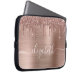 Bolsa de laptop personalizada com cinzas cônicas e cônicas, com brilho de falso ouro rosa a gotejar por um fundo de folha metálica falsa em ouro rosa. Monograma com seu nome em um roteiro branco de tendências na moda com baloiços.