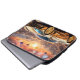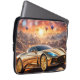 Digital art of a golden vehicle in a desert place with fireworks and balloons standing out in the landscape sky.