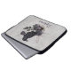 Set the tone for a dark academia aesthetic with this personalized laptop sleeve. This design features a vintage raven illustration paired with moody purple florals rendered in a deep violet and charcoal palette. It is the perfect way to protect tech for a graduation gift or a thoughtful surprise for a college student.