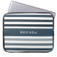 Uma popular bolsa de laptop azul e branca listrada de 15 polegadas. Adicione seu nome a este design moderno para lhe dar um toque personalizado. Este padrão inteligente e distribuído é a maneira perfeita de fazer uma declaração de moda. Parte do dispositivo Refletting Pond Stripes Essencial Coleção de Cor de inverno.