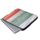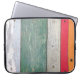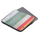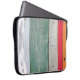 Tintas laranja, vermelha e verde desbotadas e descascadas em madeira de penas.